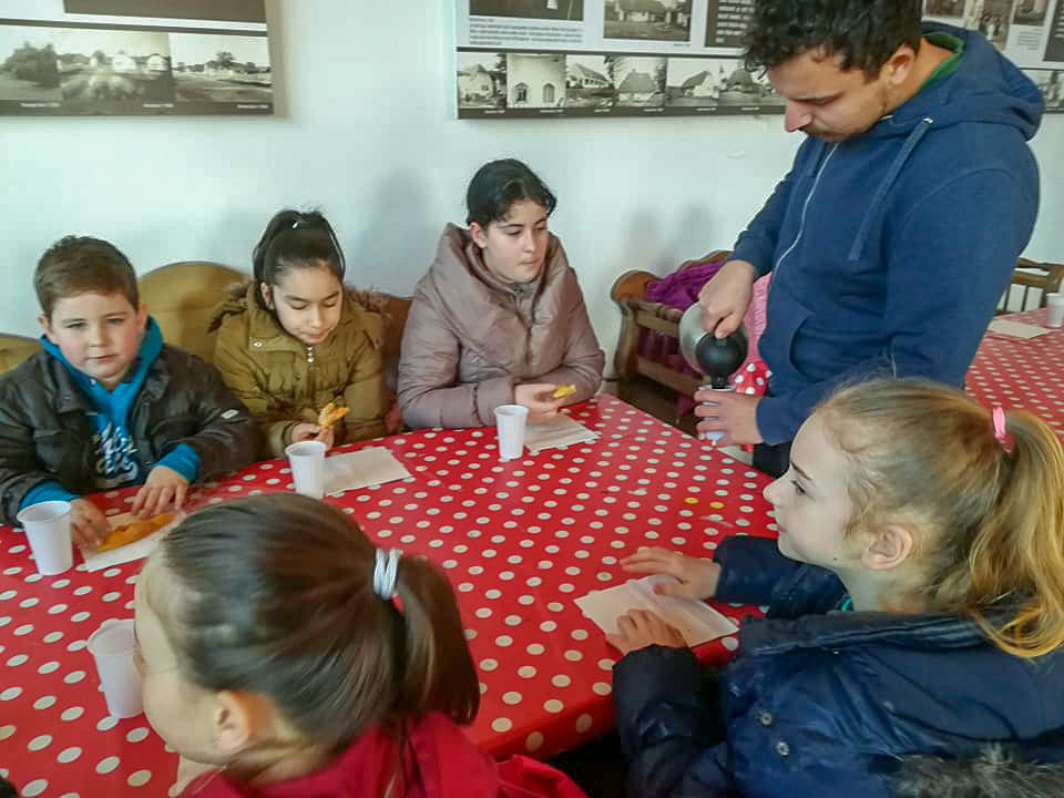 A sok szép alkotás elkészítése után elfogyasztottuk a Julika néni és Frici által készített finom csörgét és meleg teát. Majd egy kicsit megmozgattuk az izmainkat és a gyönyörű napsütésben az udvaron játszottunk. A foglalkozás végén pedig farsangi álarcot készítettünk. A sonkolyosi gyerekek már a megérkezésükkor farsangi hangulatot teremtettek azzal, hogy jelmezben jöttek. Nagyon kreatívok voltak. A nagyobb lányok ismét rengeteget segítettek a teljes foglalkozás alatt. Reméljük mindenki jól érezte magát, és márciusban is találkozunk.