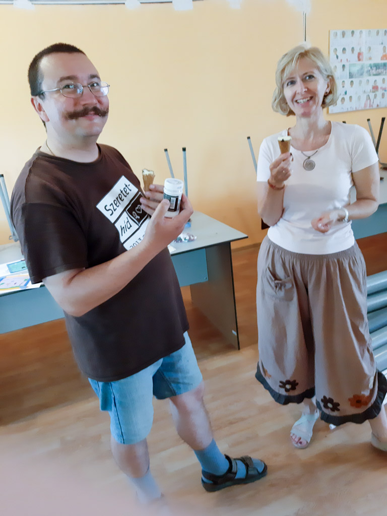 Kellemes meglepetés volt, mikor Miklós megvendégelt mindnyájunkat egy fagyival, amit nagy örömmel közösen fogyasztottunk el.