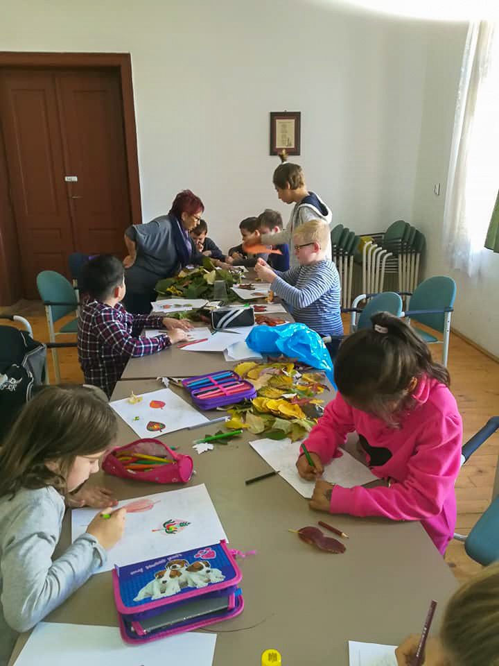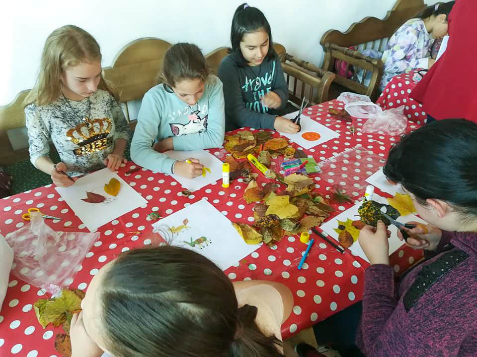 Először a népmesékről beszélgettünk, majd játékos formában dolgoztunk fel egy érdekes mesét. A szép őszi időben a kinti játékok jól megmozgatták a gyerekeket az uzsonna előtt. A kreatív munka során dióhéjból hangszert készítettünk és őszi falevelekből képeket, míg a kisebbek szép színekre színezték a faleveleket. Nagyon örültünk, hogy ismét eljöttek a tizenéves segítőink is. Sok szép munka született a jó hangulatban eltelt napokon.