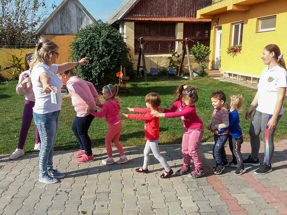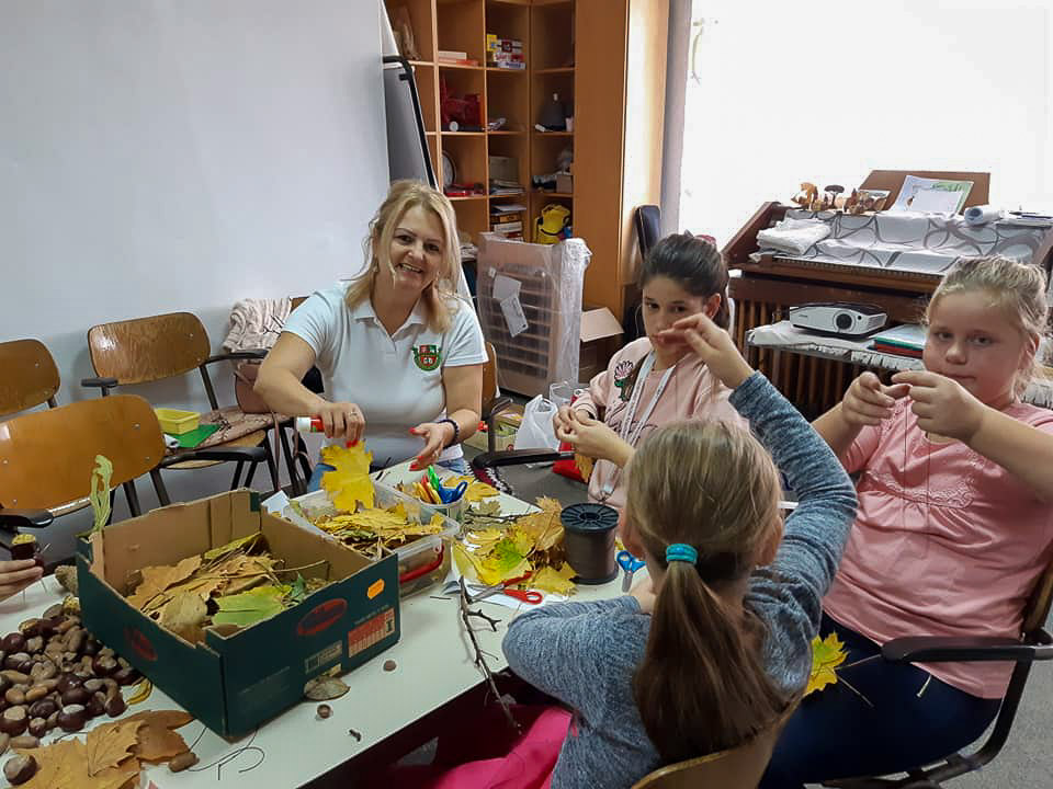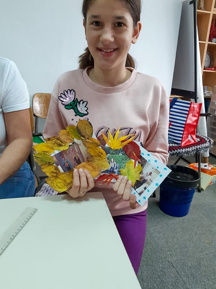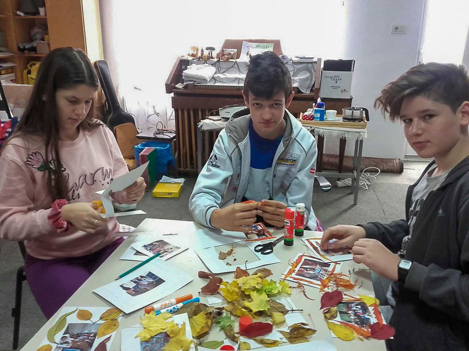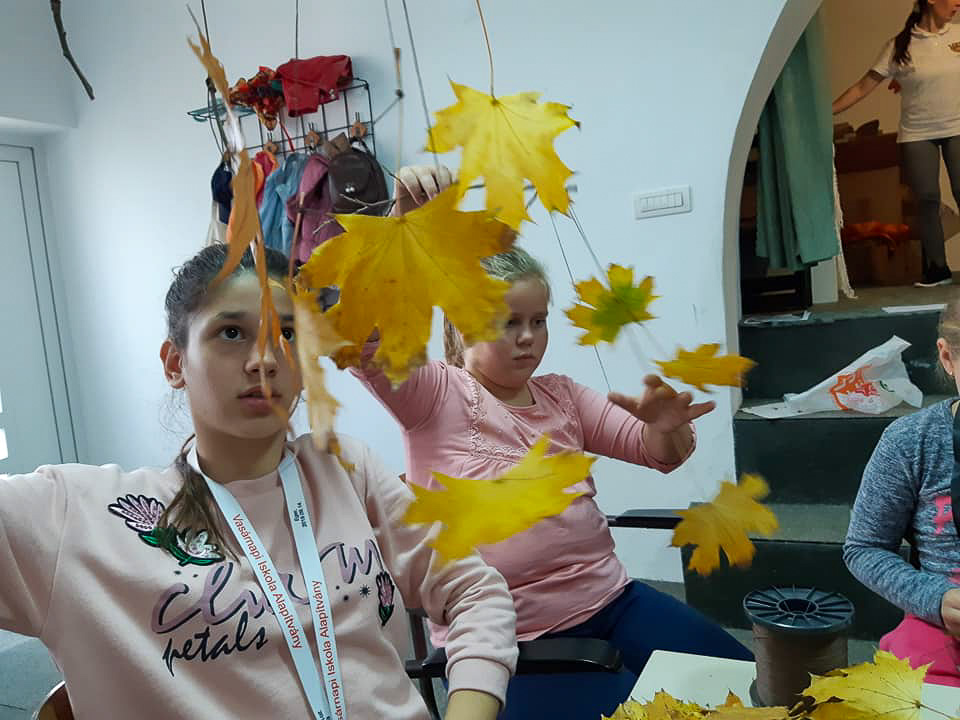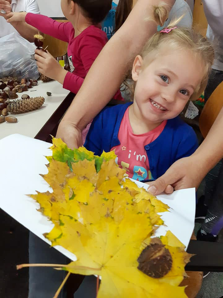A szép, napos időben kimentünk az udvarra, játszottunk a szabadban, majd az ebéd elfogyasztása után színes őszi falevelekből, gesztenyéből, tobozból dolgoztunk. Nagyon szép, kreatív alkotások születtek, minden gyerek a saját fantáziája által megálmodott egyedi dolgokat készített.