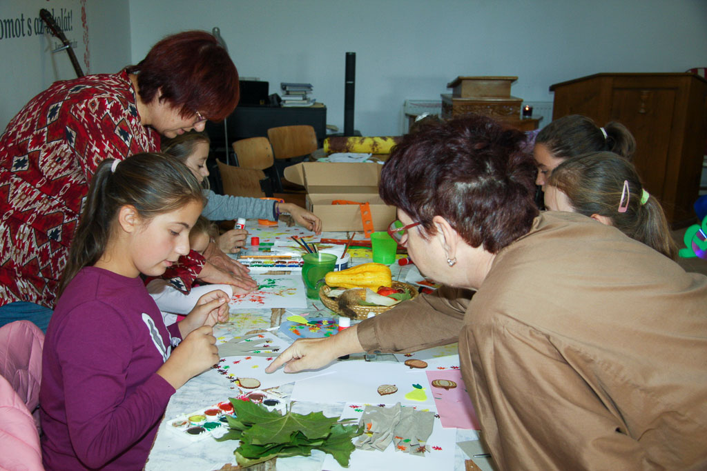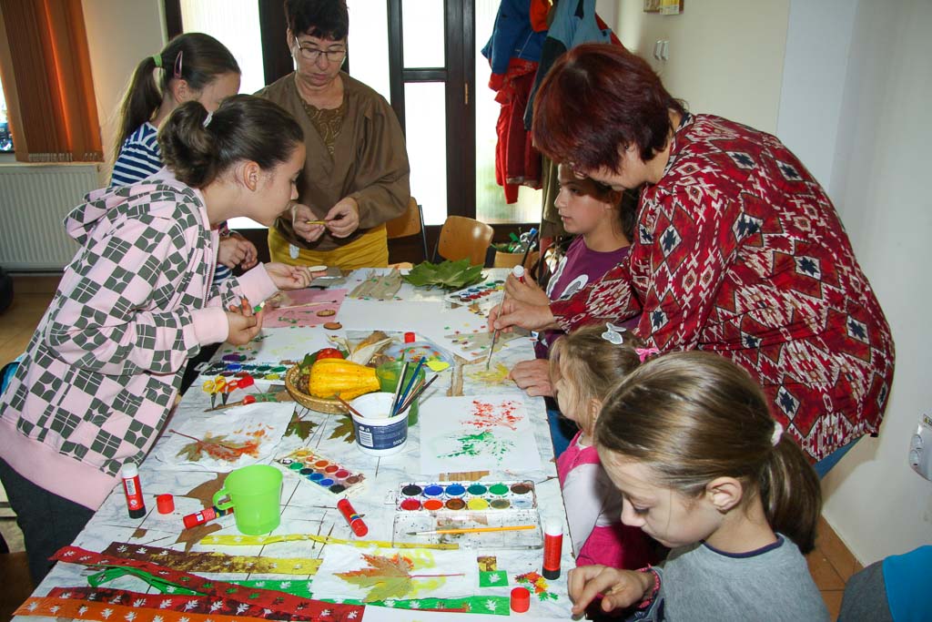 Őszi dalokat énekeltünk, megemlékeztünk október 6-ról. Benedek Elek meséit dolgoztuk fel. Az iskolásokkal a mese fogalmát, jellemzőit beszéltük meg. Megismertettük őket magyar meseírókkal, mesegyűjtőkkel, mint Kányádi Sándor, Arany László, Lázár Ervin és Benedek Elek. A nagyobbak feladatlapokat oldottak meg ebből a témából, míg a kisebbek mesehősöket színeztek. A szünetben meguzsonnáztunk és a szabadban játszottunk. A szünet után kézműves foglalkozás keretében a gyermekek őszi kompozíciókat készítettek, amelyeket örömmel vittek haza.