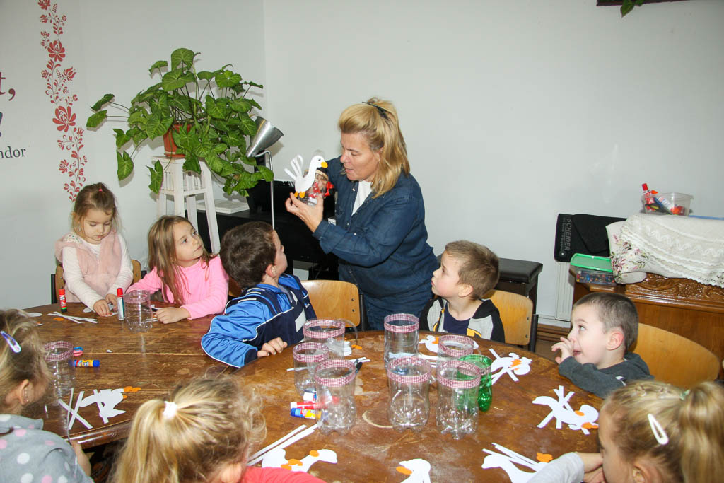 A foglalkozás elején a közös dalunkat énekeltük el, majd Márton napi párosító illetve körjátékokat táncoltunk, énekeltünk. Az óvodások változatos feladatokban vettek részt. Megismerkedtek a Márton nap eredetével és a hozzá tartozó szokásokkal. Készítettek liba díszítésű mécsestartót, libás mandalát festettek ki. A közelgő Télapó ünnepre ráhangolódva, Télapóról szóló mesét hallgattak meg, majd a meséhez kapcsolódó rajzokat készítettek.