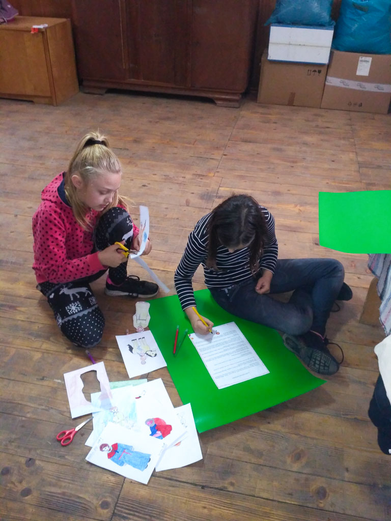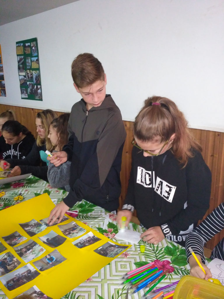 Három “kicsi” még első alkalommal vett részt a foglalkozáson, és nagy örömömre a nyári táborban részt vevők közül is többen bekapcsolódtak a foglalkozásba. Mint mindig, most is az “Örökség” című dallal kezdtünk, aztán szintén hagyományosan az októberi foglalkozás kinyomtatott képeit rendeztük tablókra, közben felidézve a jó hangulatot.