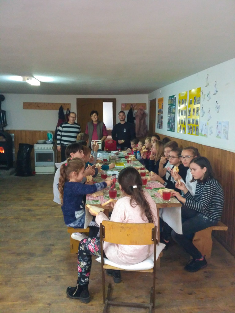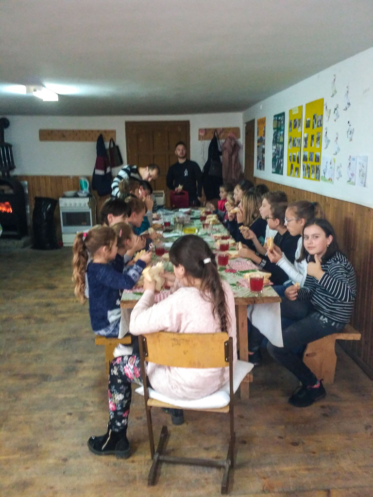 Az asztalközösség, a közös étkezés erős összetartó, közösségformáló erő. Most melegszendvicset és teát készítettünk, példás munkamegosztással. 🙂 Mindenki jóízűen fogyasztotta az ebédet. Ezt követően még örömmel letáncoltuk a szendvicseket, és a közösségi ház falát is “Márton-ludakkal” díszítettük.