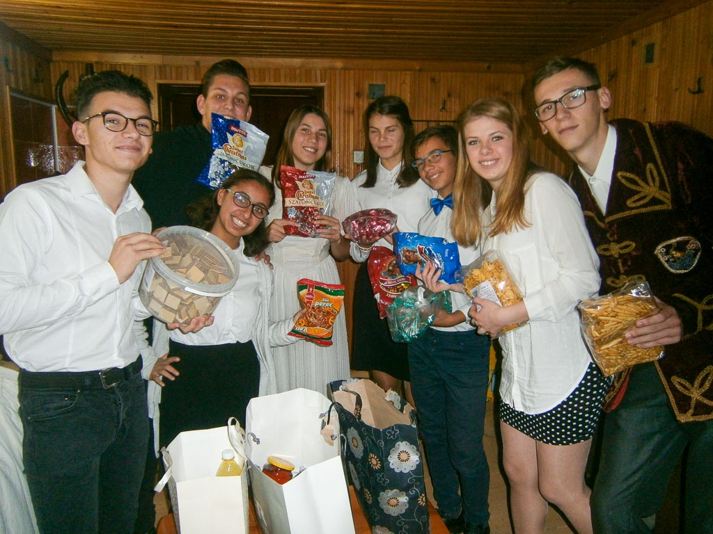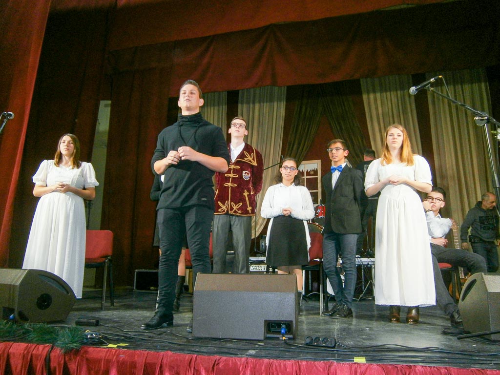 Az alábbi képek ezen az esten készültek a szereplésről és a Békéscsabai Kazinczy Ferenc Általános Iskola dolgozói által küldött karácsonyi csomagok bontogatásáról.
