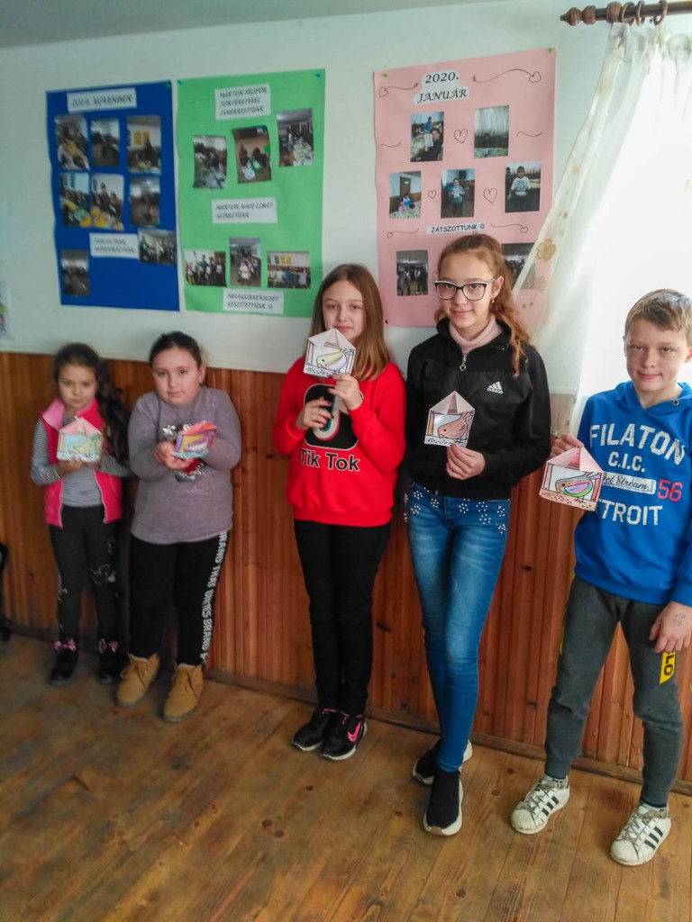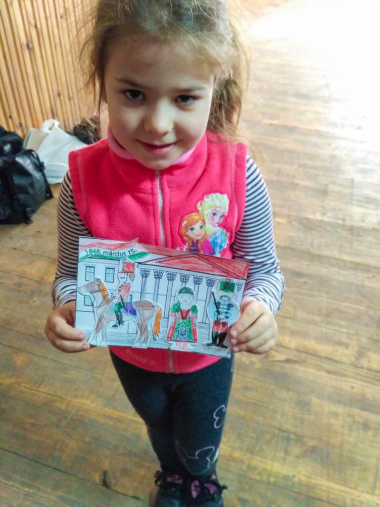 Ezt követően a téli madáretetés fontosságáról beszéltünk, és mindenki elkészítette az etetőn csipegető szép, színes madarát. Majd elsősorban március 15-éhez kapcsolódó tevékenységekkel töltöttük az időt: