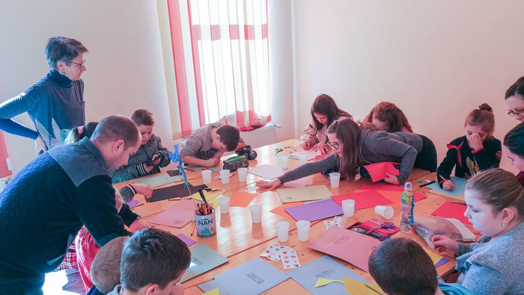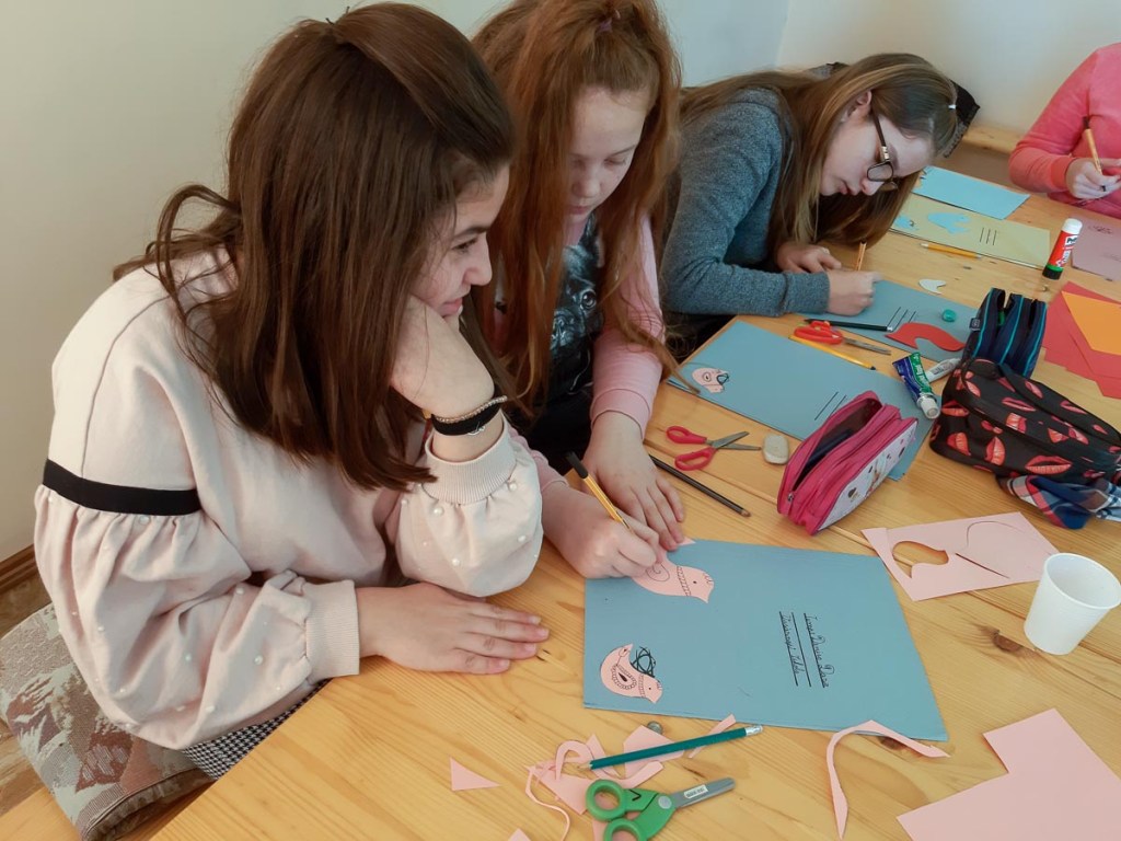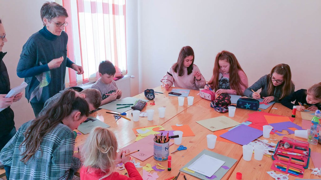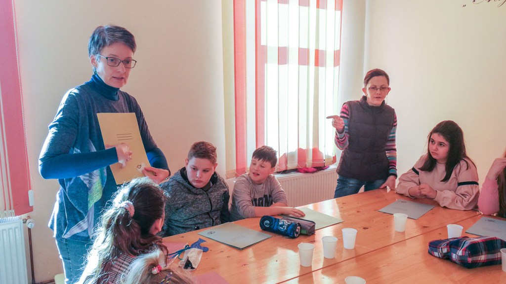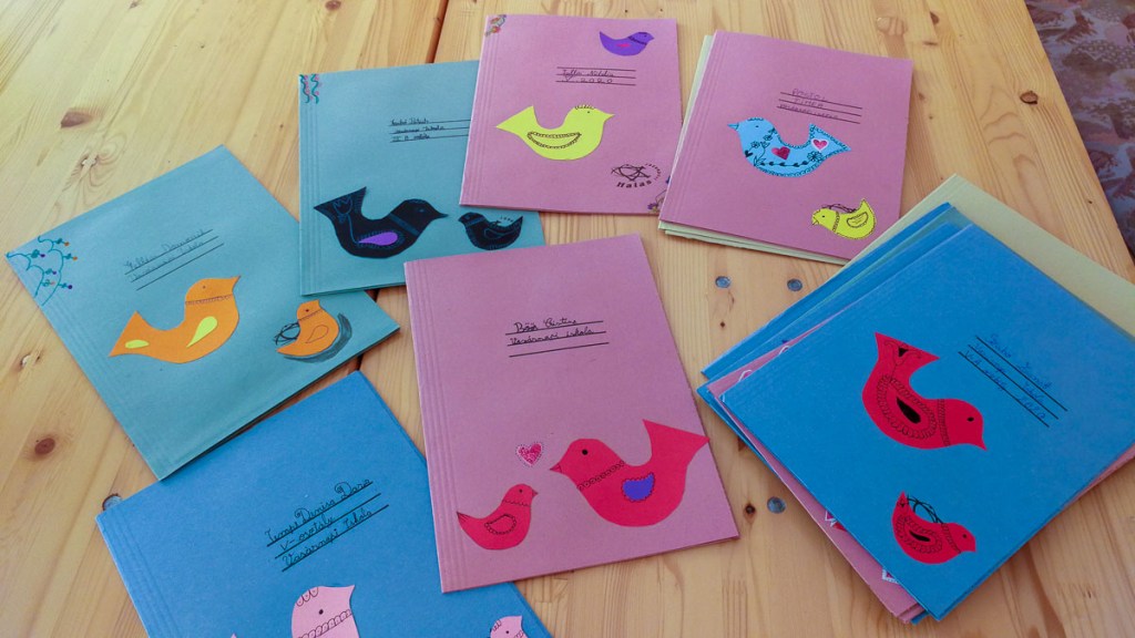 Ezután mindenki kapott egy mappát, amit feldíszíthetett színes madárkákkal. Ebbe kerülnek majd a Vasárnapi Iskola foglakozásain elhangzó versek, dalok, feladatok – s az a madaras könyvecske is, amit hazavihettek és otthon megoldhatnak a gyerekek.