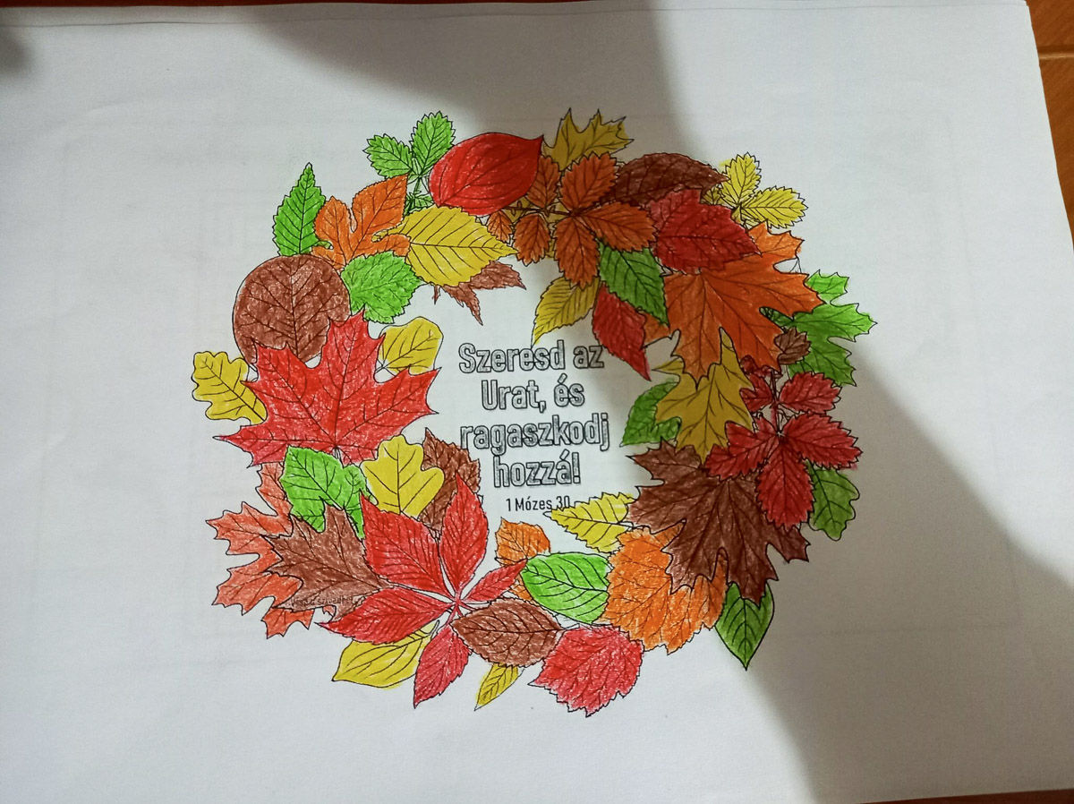 “Az októberi vasárnapi iskolás foglalkozáson a Rege a csodaszarvasról mondát dolgozták fel a gyerekek egy, a facebook csoportban megosztott ppt segítségével. A foglalkozás többi kellékét pedig postai úton kapták meg a tanítványaink. A kisebbek színezők, a nagyobbak különböző feladatok segítségével mélyíthették el tudásukat. Október a reformáció hónapja, így az ügyesebbek egy reformációról szóló totót is megfejthettek. A kiküldött sablonok és útmutatás segítségével pedig mindenki nagyon szép őszi gyümölcskoszorút készített színes papírból.”