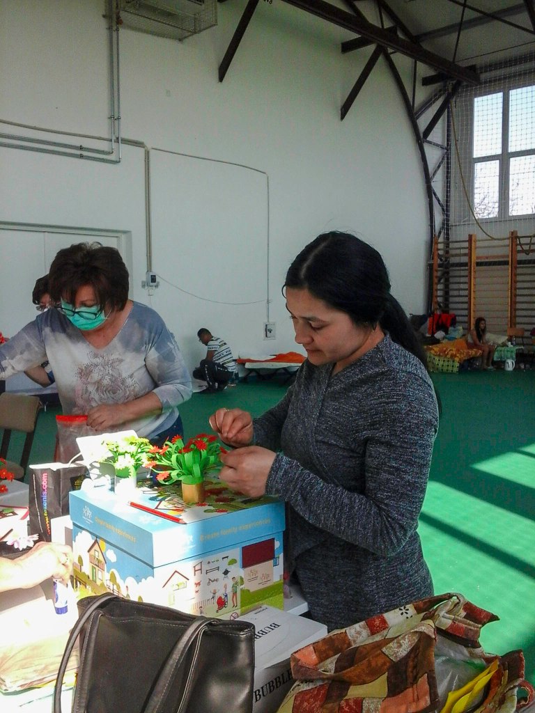 Második alkalommal is találkoztunk a Nábrádon elhelyezett gyerekekkel és szülőkkel, valamint nagyszülőkkel. Izgalmassá, rendhagyóvá és különlegessé tette a foglalkozásunkat az a tény, hogy a nemrég megválasztott Novák Katalin, az új köztársasági elnök és Victor Katalin, a felzárkózásért felelős helyettes államtitkár ezen a délelőttön látogatta meg a polgármesteri hivatalt és a menekülteket. A sok ismeretlen ember és az ajándékok feldobták a gyerekeket és a kedélyeket. Köztársasági elnök asszony kipróbálta a hozott játékokat a gyerekekkel együtt, és azután érdeklődve figyelte a munkánkat, valamint a kézműves foglalkozásba ő is bekapcsolódott.