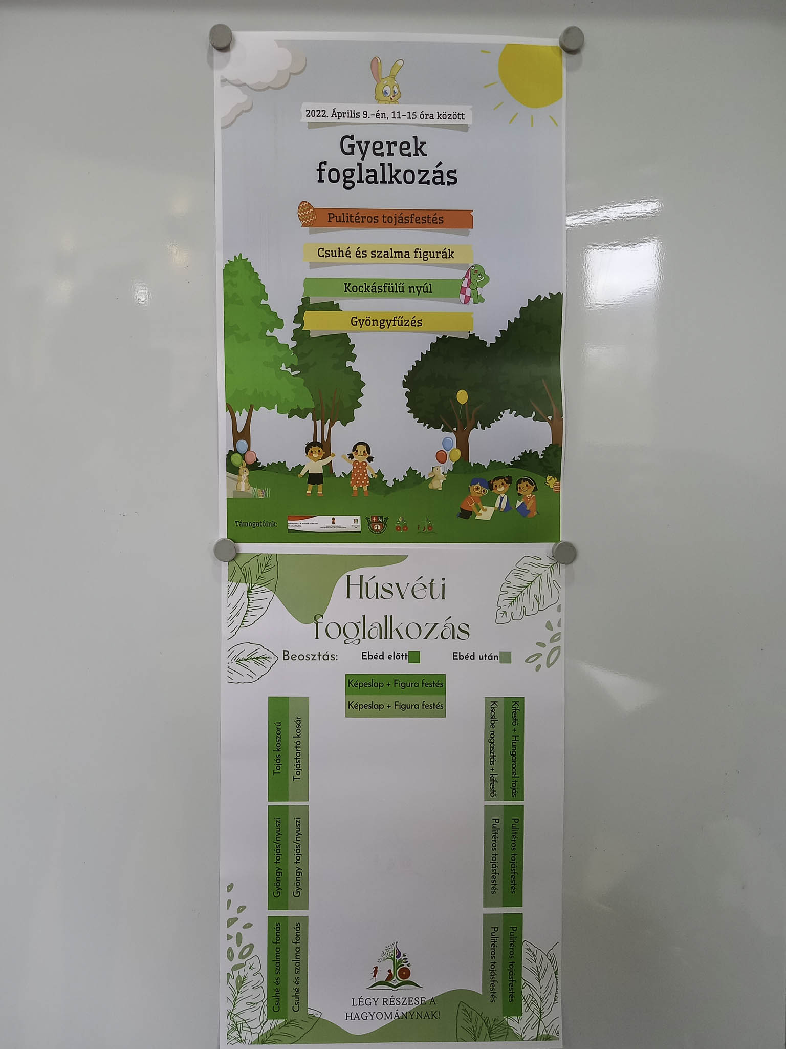 Rengeteg kreatív feladatban kipróbálhatták magukat a gyerekek. Lehetett színezni, papírból húsvéti kopogtatót készíteni vagy tojástartó kosárkát, közösen két hatalmas képet is festettek a gyerekek, készíthettek festett nyuszit, de akár gyurmából is születhettek alkotások. Fonállal dekorálva, nagyon szép piros-fehér-zöld mintájú tojások is készültek. Persze ilyenkor igazi különlegességeket is lehet készíteni. Mégpedig gyöngyből vagy csuhéból nyuszit, szalmából kosárkát csinálni. És persze a köröstárkányi pulitéros tojásfestést is ki lehetett próbálni.