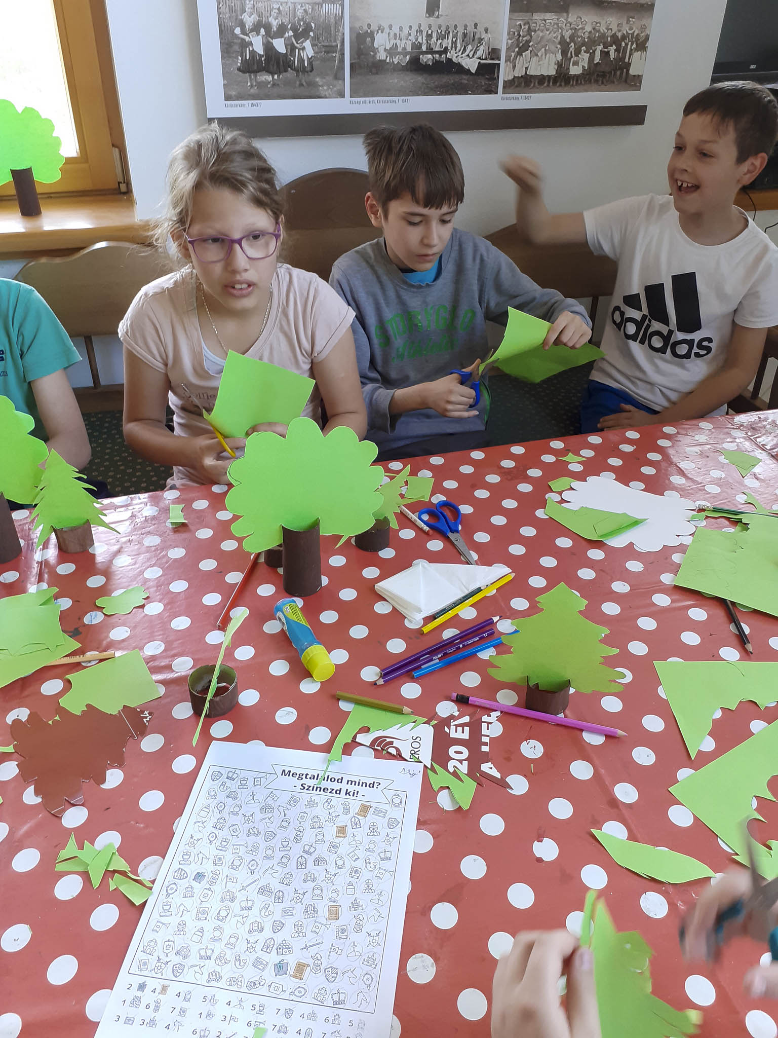 Nagy örömünkre sokan részt vettetek ismét a Tájházban tartott foglalkozáson május közepén. Közösen feldolgoztuk Az égig érő fa című magyar népmesét, és sorra elkészültek a mese hősei is, sőt két klassz kis erdő is készült. Persze a közös játék és a finom uzsonna sem maradhatott el.