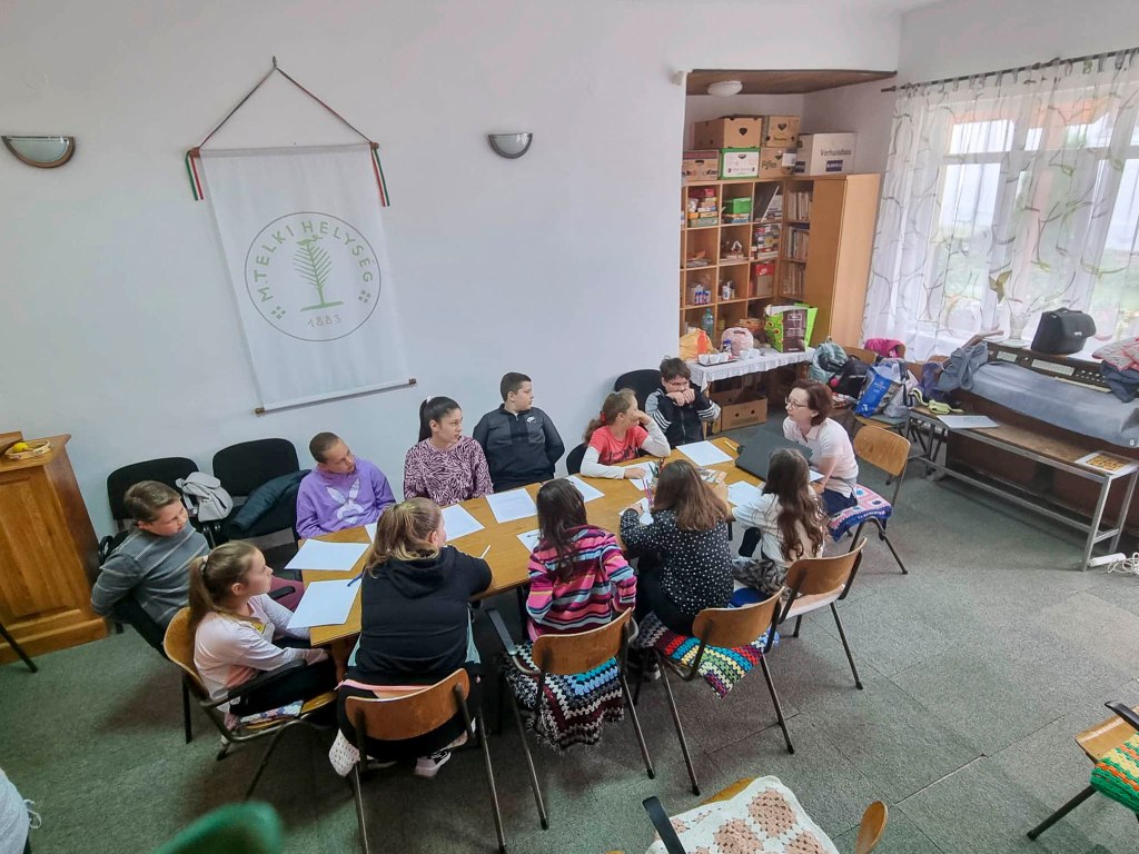Május 28-án ismét Mezőtelkiben tartottunk foglalkozást. A Partiumi Keresztény Egyetem két óvodapedagógus hallgatója segítette munkánkat az oktatójukkal együtt. A foglalkozásra elkísért bennünket a munkánk iránt érdeklődő Derecske város polgármestere, Bordán Szabolcs és kislánya.