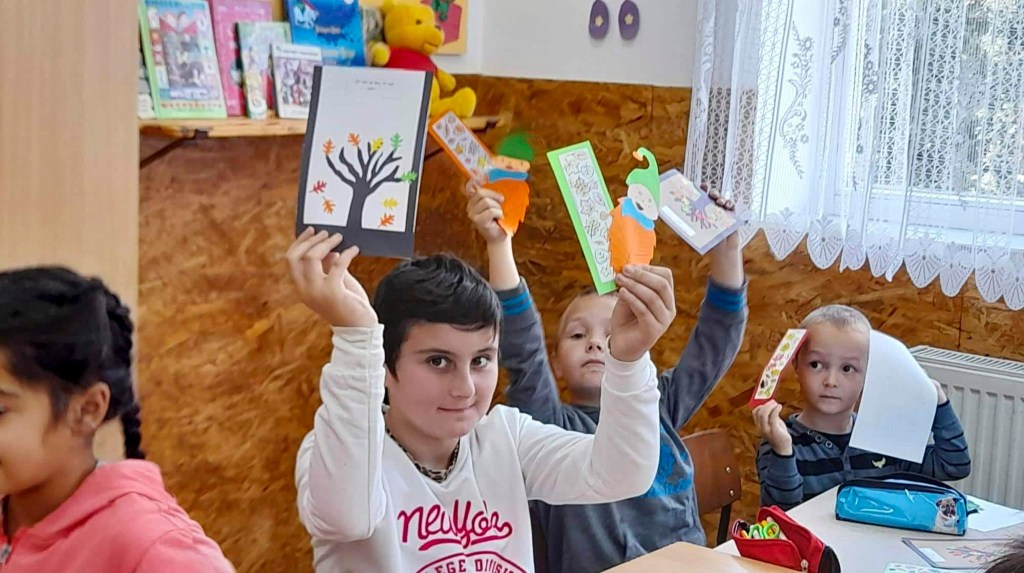 Negyvenegy biharfélegyházi gyermek várt bennünket: óvodásokkal, iskolásokkal tevékenykedtünk ezen a szép őszi napon. Verseket olvastunk, képeslapot, könyvjelzőt, ablakdíszt készítettünk, a legkisebbek örömmel foglalatoskodtak a szép őszi színezőkkel.