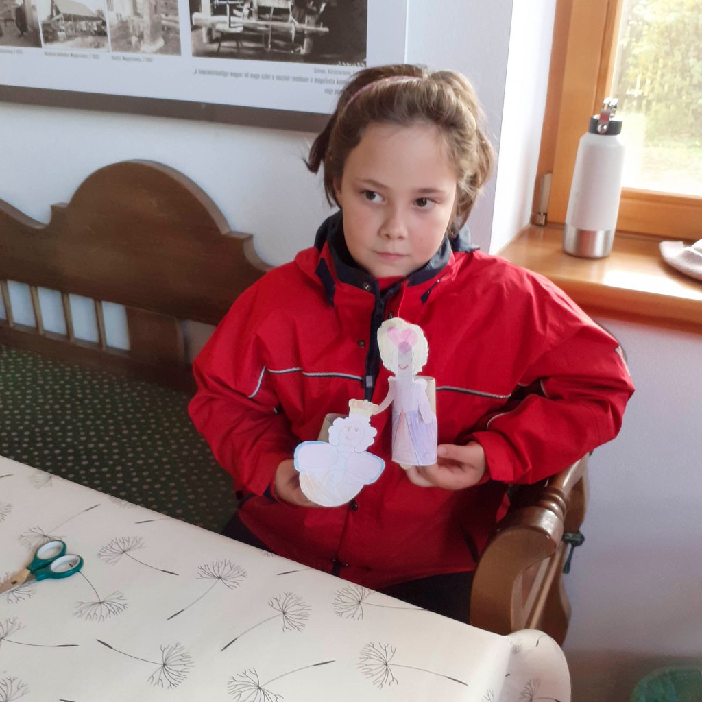 Közös játék következett a szabadban, majd az ízletes tízórai elfogyasztása után a kézműves foglalkozásra került sor. Színezés, rajzolás, vágás, ragasztás, bábkészítés, amely szintén a rajzfilmre épült. A francia király és a királylány igen változatos formában került megjelenítésre, szép munkák születtek. 14 órakor zártuk a foglalkozást, amely rendben és jó hangulatban telt el.