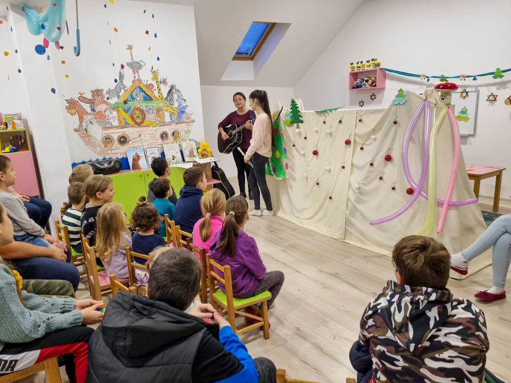 Az előkészületek folytak már a kiutazásunk előtt is, az előadásra interneten készültünk „online” próbáltuk a szerepeinket, jól összedolgoztunk. Nagyon nagy sikerünk volt, a gyerekek és a szülők is élvezték az előadást, a kis bábszínházunkat. Ezt követően énekeltünk, a Tiszteletes Asszony gitáron kísért, kvíz játékokat játszottunk, majd kézműveskedtünk. Karácsonyra készülvén karácsonyi díszeket, gömböket, karkötőket készítettünk, a gyerekek rajzoltak, színeztek, vágtak és ragasztottak, alkottak.