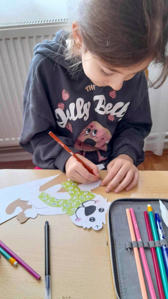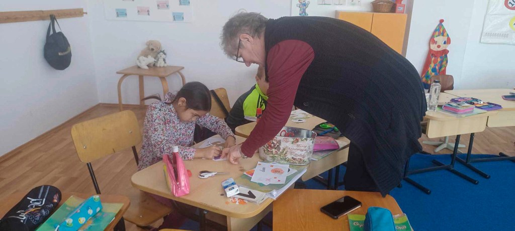 A foglalkozásra előkészített eszközöket, kellékeket átadtuk a tanító néninek, hogy közösen készítsék el a ma távol maradt vasárnapi iskolás gyerekekkel, illetve a nekik szánt édességet ossza ki számukra.