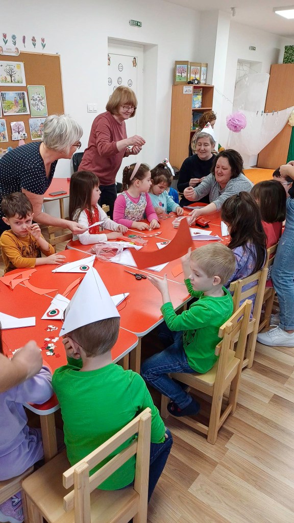 Március 9-én megtörtént a személyes találkozás, és megtartottuk az első foglalkozást, melyen részt vett Benkei Ildikó és Jámbor Gabriella. Jó volt ismét találkozni, és érezni, hogy nem hagynak magunkra, és hangsúlyosabbá tették a kapcsolatfelvételt. Van egy óvodás (13 – 15 fő) és van egy iskolás (0. osztálytól 5. osztályig) csoport.