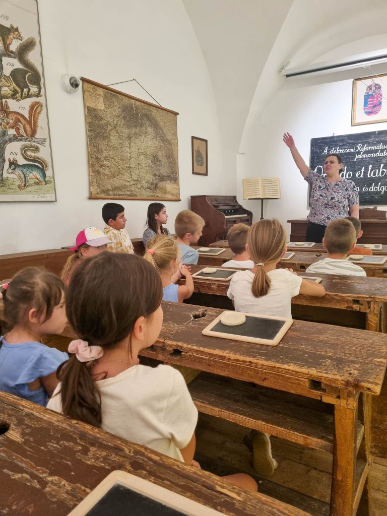 Első helyszín a Református Kollegium volt, ahol a tárlatvezető teljesen elvarázsolta a gyerekeket. Nagyon jó gyerekbarát bemutatót tartott, közelebb hozta a történelmet a mai értékekkel a gyerekekhez, amit teljesen át tudtak érezni, befogadni és meglátni a régi kor diákjai szemével. Kipróbálhatták az egykori diákok egyenruháit, és még sok mindent.