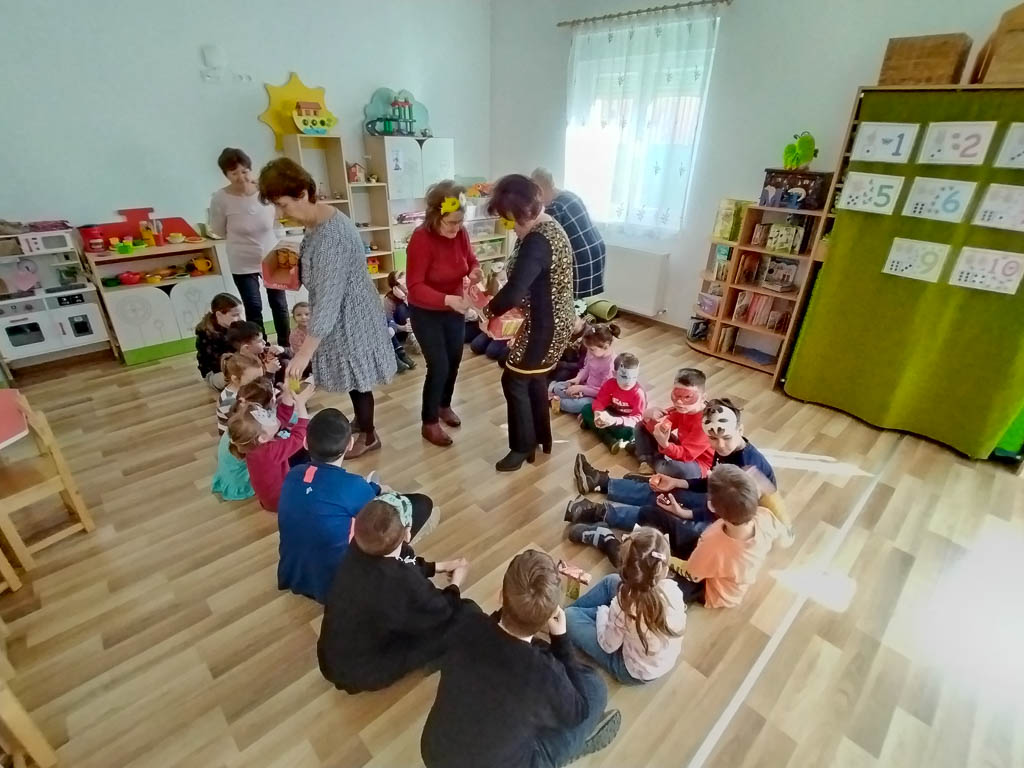 Az óvodás és az iskolás csoportban egyaránt farsangi „szemüvegeket”, álarcokat készítettünk a gyerekekkel. A kicsik a már előre kivágott elemeket tetszésük szerint kidíszítették. Tevékenység közben farsangi mondókákat és dalocskákat tanultak, melyeket le is játszottak, mozgással, taglejtéssel kísérve.