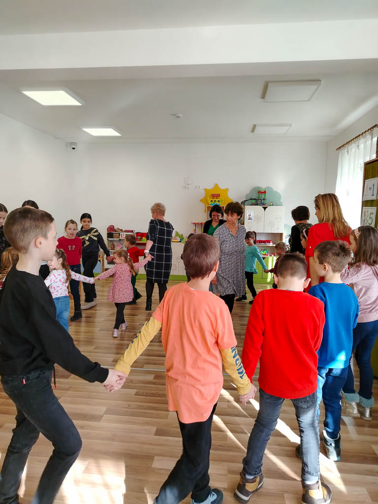 A tízórai szünet után kezdődött a tánc, a mulatság. Segítségünkre volt egy mátészalkai nyugdíjas óvónő, aki tánctanár is. Fergeteges hangulatot teremtett. Felnőtt, gyerek egyformán élvezte a néptánc elemeit és a körtáncokat. Teljes felszabadultság, vidámság, jókedv lengte be az épületet.