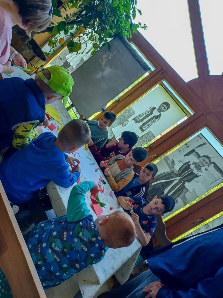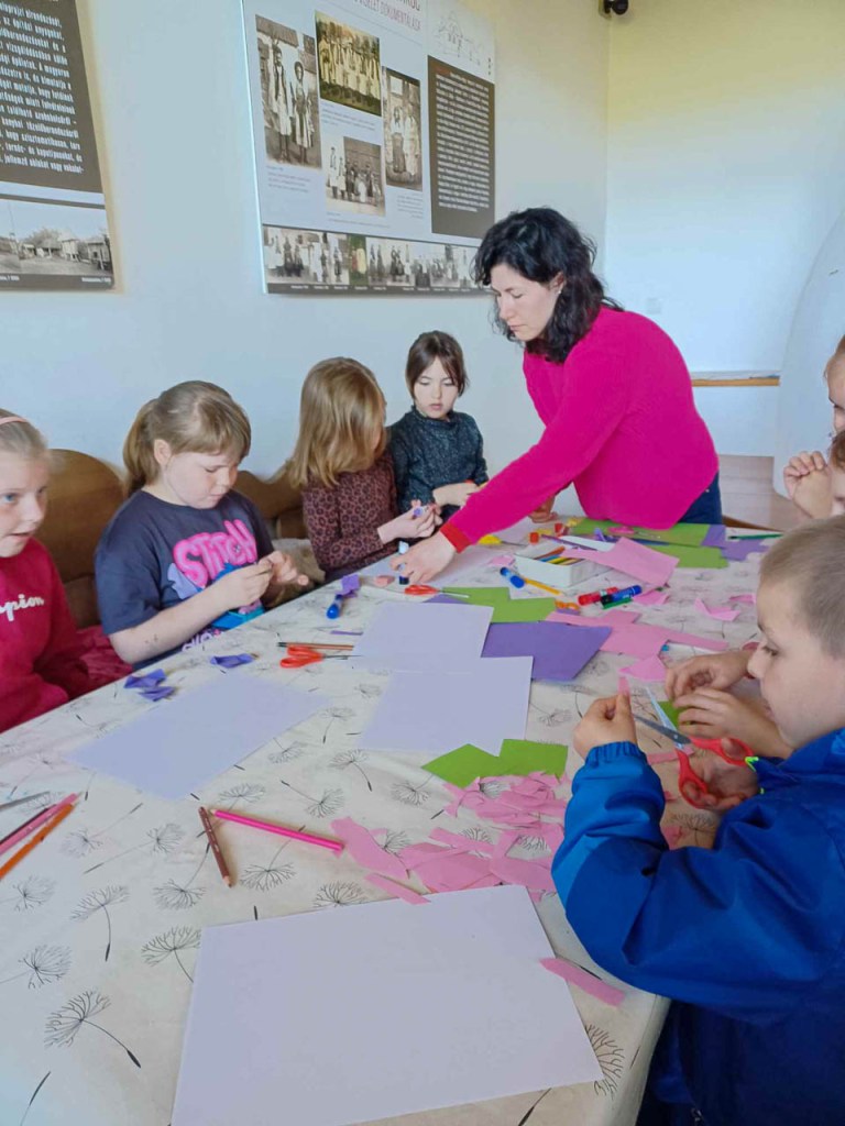 A Hajni néni és a fiatalok által készített finom szendvics ebéd után pedig szép tulipános késői anyáknapi ajándékok is készültek.