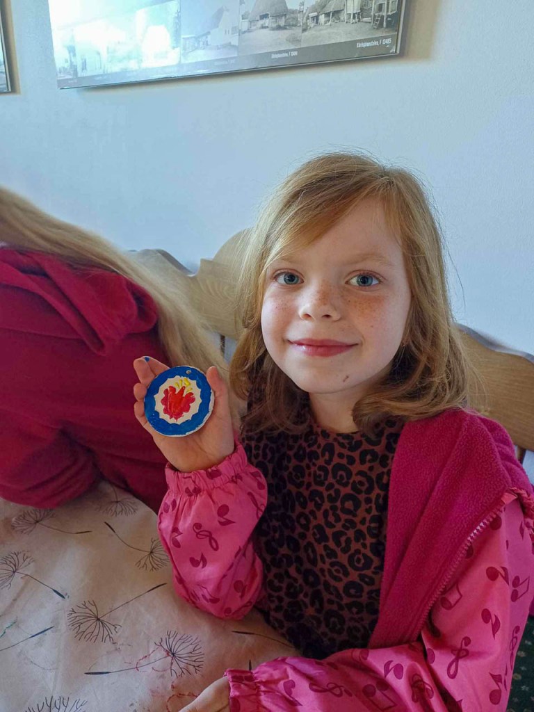 A Frici és Szilvia által előre elkészített tulipános medál kifestése közben mindenki kreativitása szabadon szárnyalhatot. Csodaszép nyakláncok készültek.