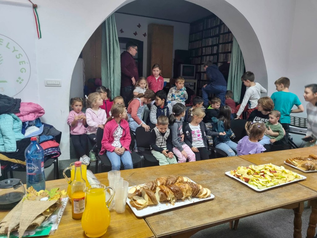 Szép, élményekkel teli szombati napot töltöttünk Mezőtelkiben. A foglalkozásra a környező településekről is érkeztek gyerekek, Pusztaújlakról és Köröskisjenőből, összesen 29 gyűlt össze. A helyi Tiszteletes Úr, a helyi Óvó néni, és Tanító néni, valamint Nagyváradról 4 óvoda pedagógus egyetemi tanuló is segítette a munkánkat.