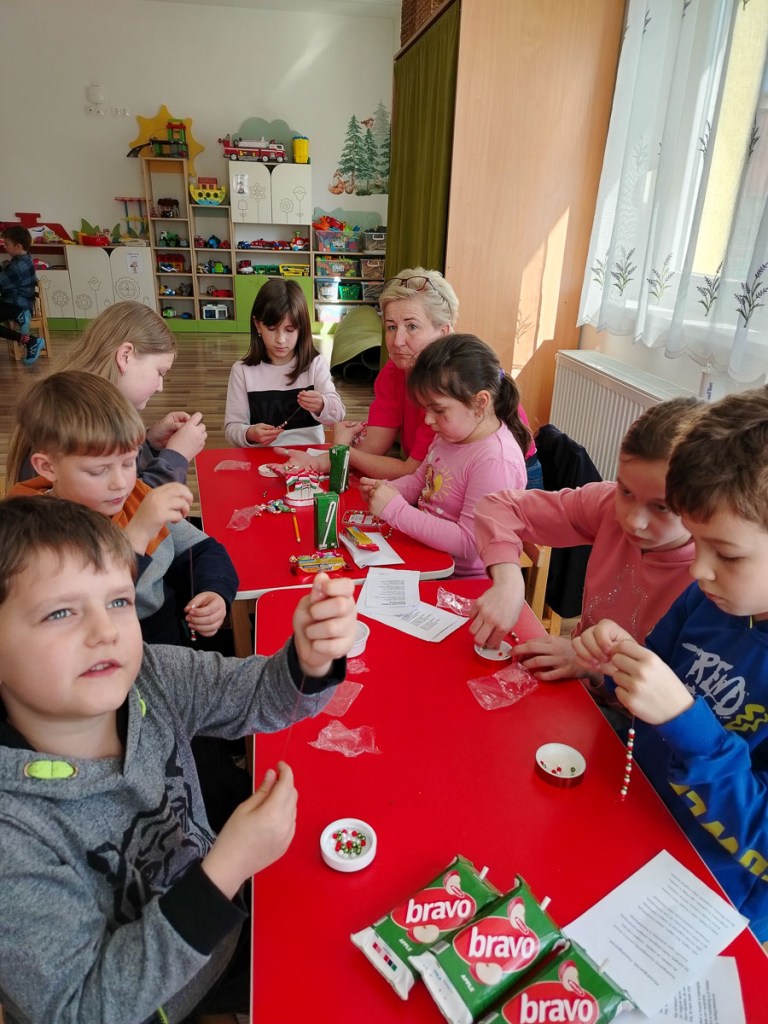 Mindezt követte a kézműveskedés: piros, fehér, zöld gyöngyökből karkötőt fűztek maguknak. Játékra is maradt egy kicsi idő.