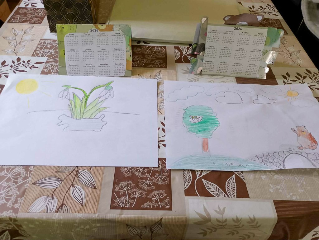 A téli betegségek a komaróci és szesztai gyerekeket sem kerülték el, ezért a februári foglalkozás elmaradt. A készület azonban nem volt hiába. Parti Tibor tiszteletes – mint egykor a járvány idején – vállalta a postás szerepét, így mindenkihez eljutott a csomag, mely tartalmazta a 2026-os naptár hozzávalóit, egy mesét feladatlappal, tavaszi verseket, egy-egy pár macis zoknit és egy Dörmi szeletet. A megvalósításról és az örömről néhány fénykép tanúskodik.